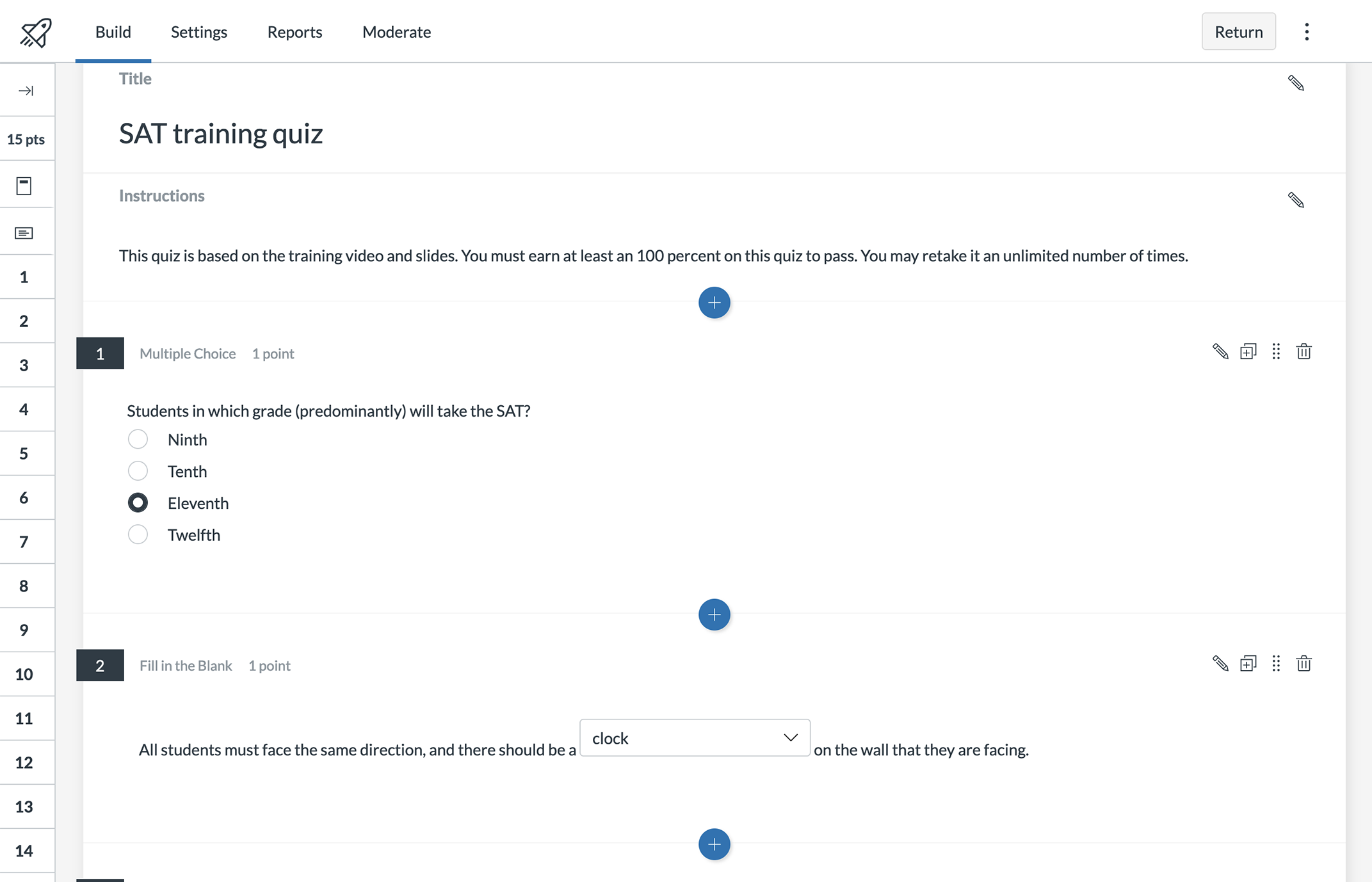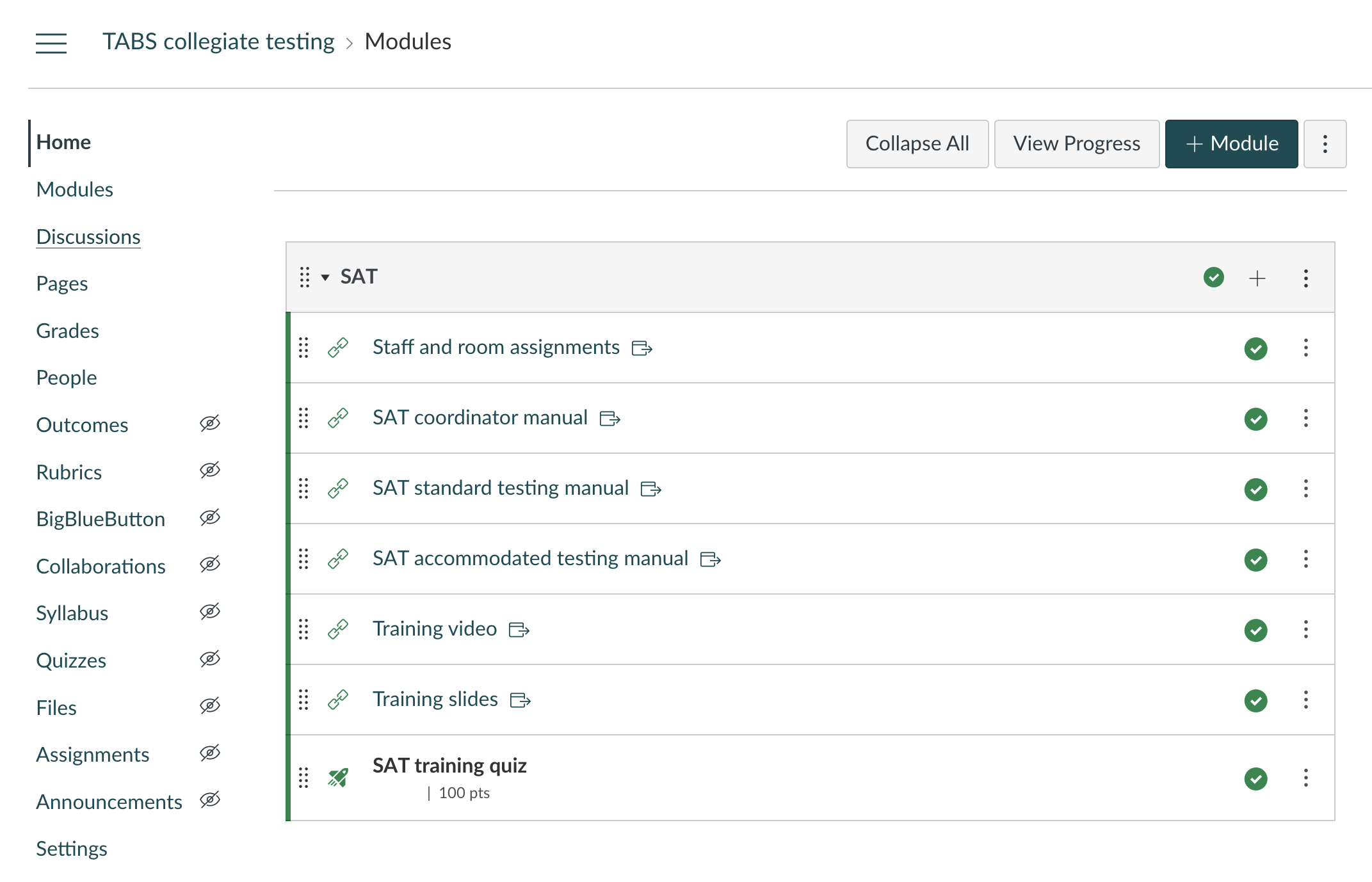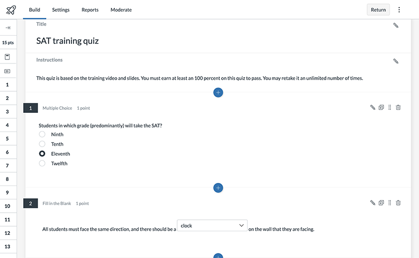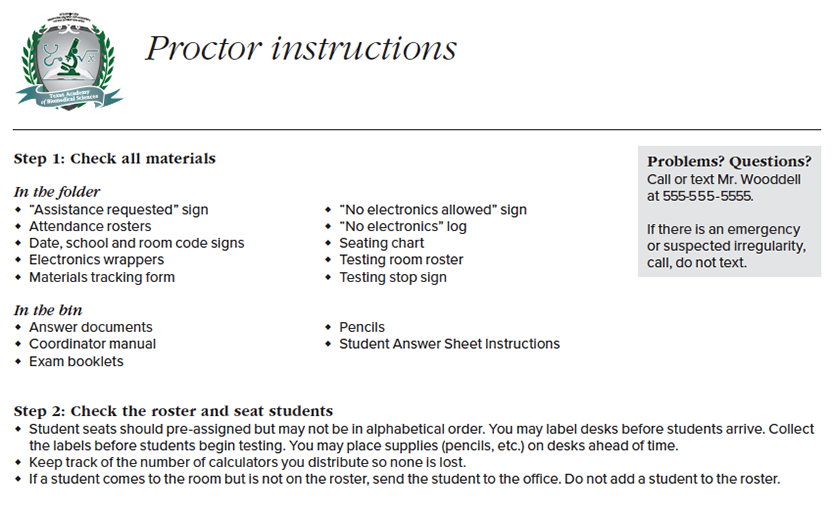 Standardized exams are stressful for both examinees and staff. One of the biggest issues faced by exam coordinators is that training for these tests is at once essential and boring. To address the problem, I moved training online. Exam staff are provided the official manuals and a training video and then must score a 100 percent on a comprehension quiz on Canvas. This method allows staff members time to understand the content and prove that they're ready for exam day. On exam day, staff members receive a paper manual and a step-by-step reference page.